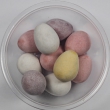 OPAKOWANIE ZAWIERA 10 CZEKOLADOWYCH JAJECZEK W CUKROWEJ POLEWIE. ŚLICZNE PASTELOWE KOLORY, NIEKTÓRE NAKRAPIANE. ZESTAW JEST RÓŻNOKOLOROWY.